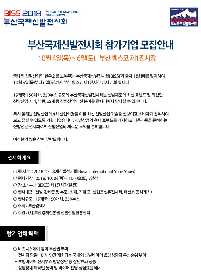 [안내]2018 부산국제신발전시회 참가기업 모집안내